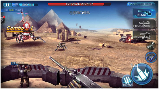 游戏中不止呈现出了极为丰富的战场让玩家可以在超多的场景中享受射击的快感,更通过海、陆、空三方位的敌人,让玩家体验到立体化战争的激情。