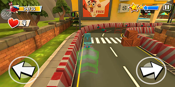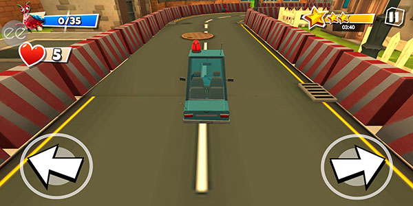 7、你在驾驶的过程中会见到堆在赛道上的盒子,我们要尽可能绕过它们,否则会损失生命值,也就是左侧爱心的数量,