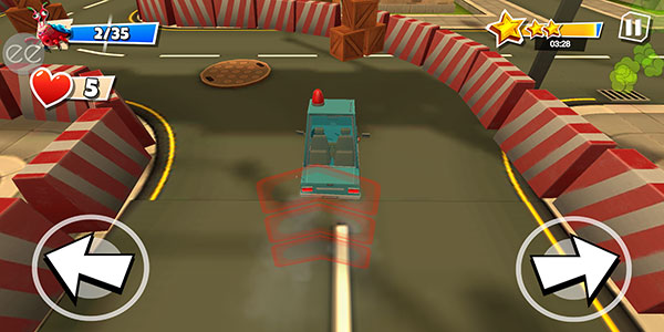 6、汽车是会自动加速前进的,玩家只需要通过点击左右两侧的箭头来控制车辆的方向即可,