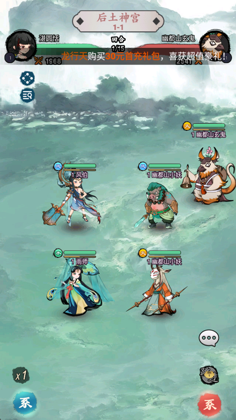 3、游戏采用回合制自动战斗;
