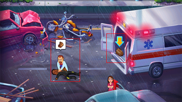 1、游戏的开始是一个男子出现了晕厥,有位医生正在抢救,玩家需要根据医生所需要的东西来点击屏幕获取。