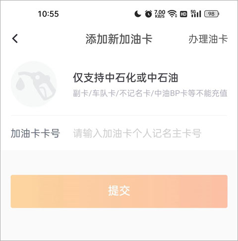 4、然后输入加油卡卡号,最后点击提交就添加成功了。
