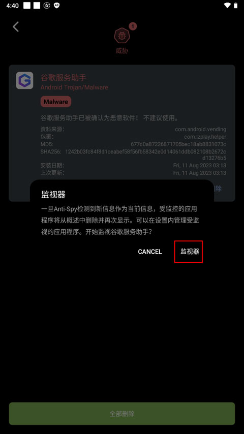 6、检测间谍、短信和GPS跟踪器以及监视应用程序。