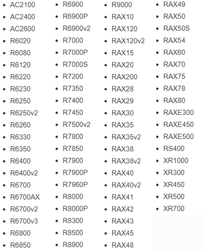 AC2100、AC2400、AC2600、R6020、R6080、R6120、R6220、R6230、R6250、R6250v2、R6260等