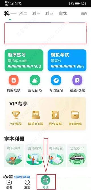 3、点击“考试”
