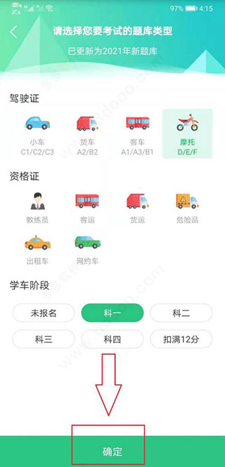 1、理论考试:提供小车、货车、客车、摩托车和资格证题库!