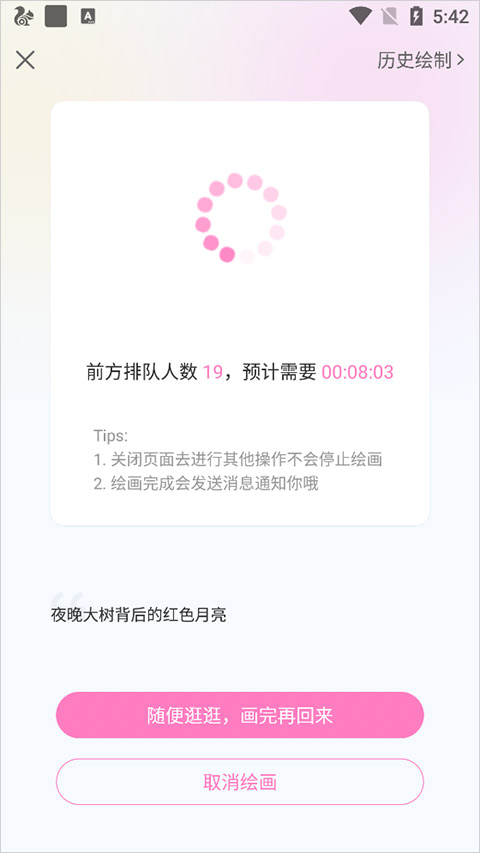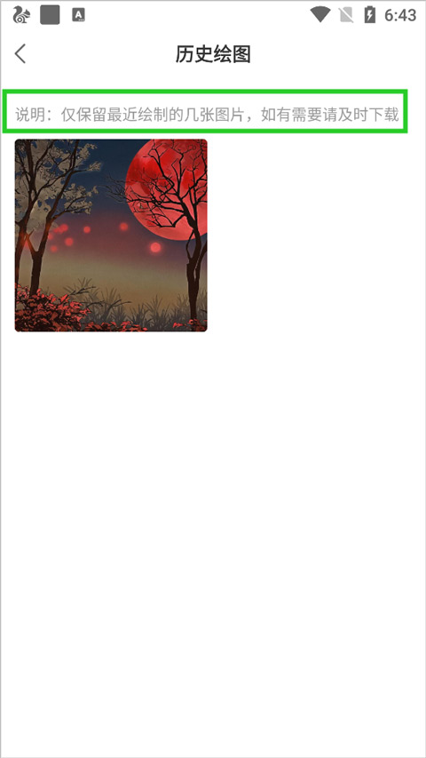 9、然后用户继续按上述方式找到入口,就可以看到刚才的作品了,如果看不到可以点击页面右上角的【历史绘画】来查看