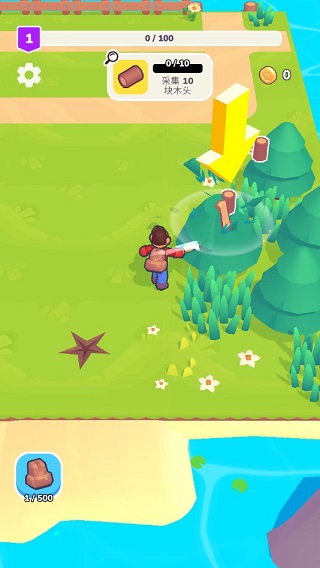2、你要努力砍树,挖矿,收集资源,以便在市场上建造新的建筑或交换金币和钻石。