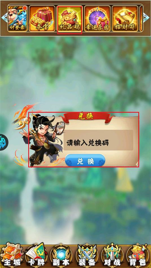 2、使用方法:主城-活动-礼品码(兑换成功后主界面-领奖处领取)