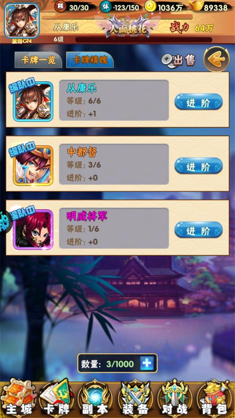 卡牌可以吞噬其他蓝色及以下品质的卡牌,每次最多可以吞噬5张卡牌,卡牌升级后各个属性都会有相应的提升,除了吞噬其他卡牌,还可以用精气对卡牌升级,卡牌炼化或重生后,经验会以精气的形式返还,金币也会返还!