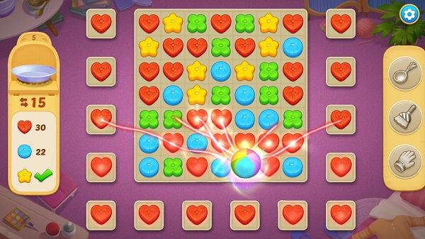 游戏内消除、闯关是推动进度的基本构成,也是最为基础的玩法。依据三消规则清除关卡内指定任务,便可获取新的家具和装饰物,根据每个房间的布局与风格,选择令你满足的家具进行翻新或布置,在解锁与改造的过程中,探索庄园内的每一间房间,每一寸土地。此外,Matchington Mansion融入了许多NPC剧情任务,在你忙着翻新庄园的时候,尝试与这里的角色进行互动,期间隐藏的彩蛋是探索这片神秘庄园最为独特的体验,借助NPC的帮助,完成特殊家具的收藏任务,探索更多有趣的剧情故事。
