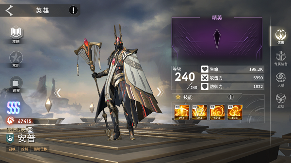 安普是一位拥有强大战斗技能和战略思维的刺客英雄,他能够利用自己的技能来突袭敌人并对其造成重创。他的主要武器是双刃匕首和毒箭,他还能使用技能来提高自己的速度和隐身能力。
