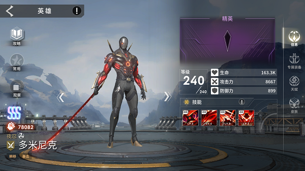 多米尼克是一位拥有极高机动性和近战能力的刺客英雄,他能够利用自己的技能来潜入敌人阵营并对其造成致命打击。他的主要武器是匕首和飞镖,他还能使用技能来提高自己的隐身能力和闪避能力。