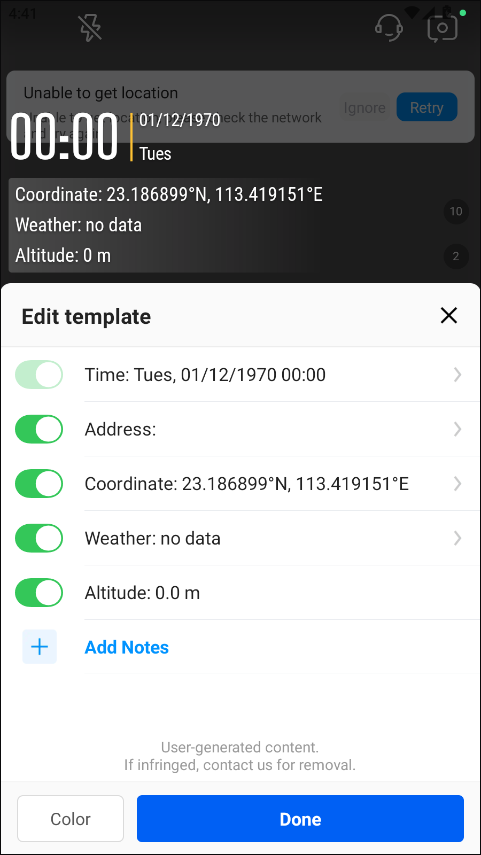 – 包含地图、坐标、天气、备注、公司徽标、名片、标签、海拔等信息,打造全面的照片记录