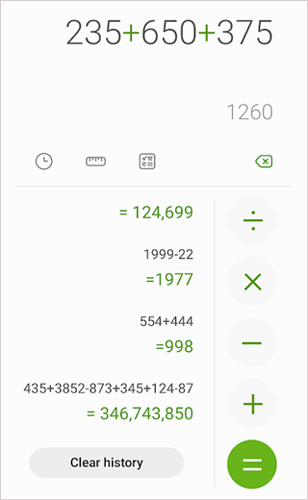 三星计算器app官方版是一款专为三星手机用户打造的内置计算工具,旨在满足各类计算需求,从基本的加减乘除到更高级的工程计算和单位转换,应有尽有,能适用于各种场合,无论你是工程师、科学家还是普通用户,都能在日常生活和工作中找到它的用武之地。三星计算器app支持横屏进入科学计算器模式,像是函数、常数的使用,以及工程计算、长度由英寸换算成厘米这类型的单位转换等多种进阶类计算功能,是覅的强大,有需要的用户快来下载吧。