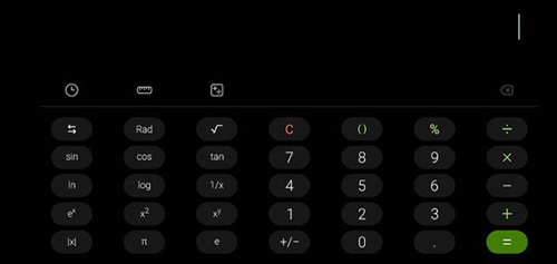 支持基本的加减乘除计算,以及百分比、平方、开根、倒数、取倒数等常用的计算功能;同时,在横屏状态下,它还可以切换成科学计算器模式,提供了更多的功能;