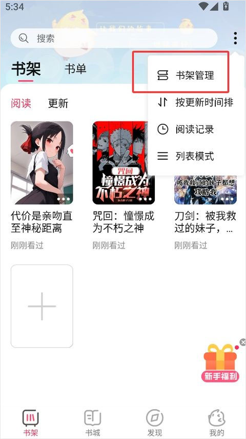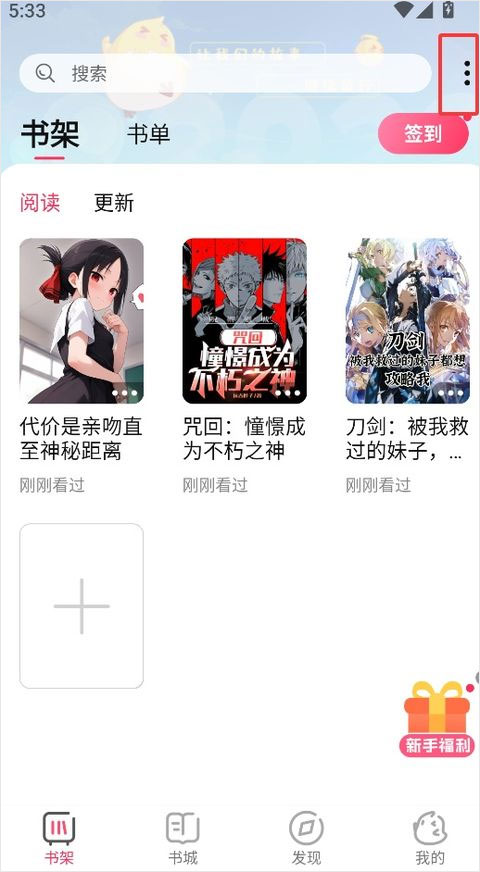 1、在书架界面点击右上角的三个点图标