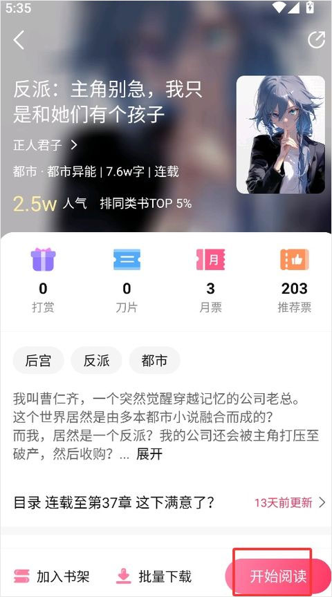 2、在书籍详情界面点击开始阅读
