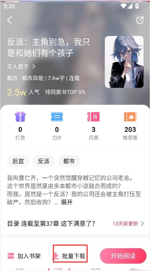 2、在书籍的详情界面中选择下方的批量下载