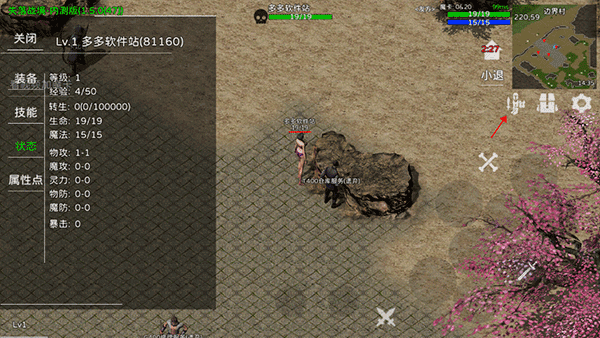 3、点击下方箭头按钮可以开启辅助战斗,也叫自动寻路战斗