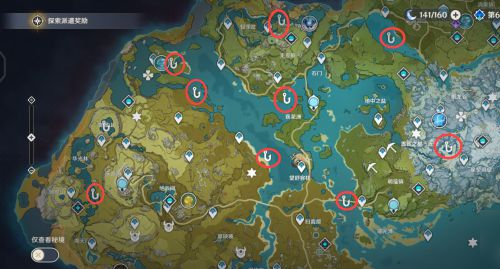 蒙德地区钓鱼点: