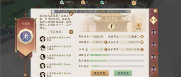 加入帮派后每天进行就能进行大量的帮派活动了,下面先给大家介绍一下: