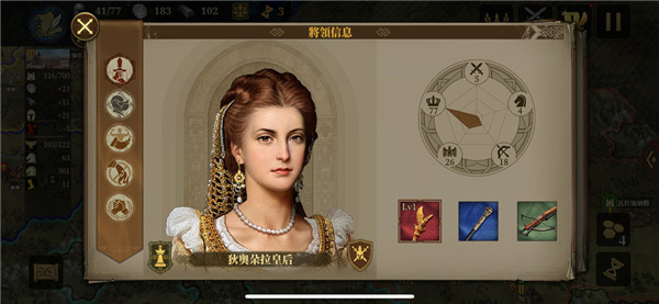 3、狄奥朵拉皇后或安东尼娜的内政能力要达到75或以上最佳,70点内政能力也可以用,但是会多了一个倒卖资源的步骤,不过也能确保3回合结束游戏,我比较懒刷的时候能少一个步骤是一个,所以把内政能力点到了77。