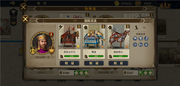 配置:埃提乌斯(轻微培养即可用),配兵:军团大队-拉文纳精锐弩兵-蓝靛突袭者(兵种需要培养个几级,以确保一击破城,有战斧骑兵的可把蓝靛换成战斧,配成11速效果更佳)