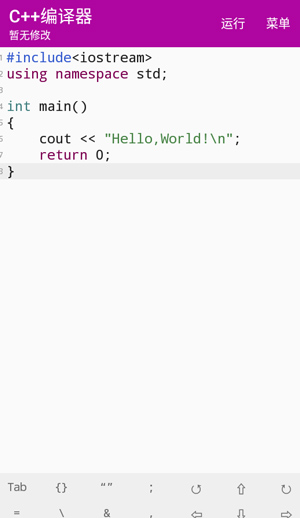1、在本站下载安装c++编译器手机版,运行软件,打开之后直接在手机上编写代码,写完之后点击运行,可以进行代码的编译组建以及运行;