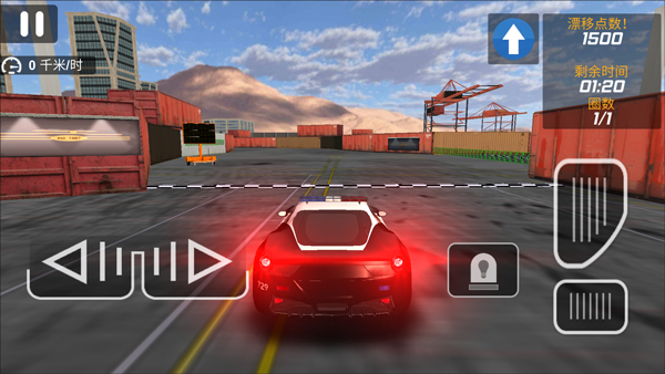 4、选好后点击出发开始游戏,左下角控制车辆拐弯飘逸,右下角控制车辆前进后退。