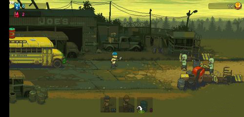 在画面上本作还是延续了系列游戏独有的精致像素风格,在色彩上多以灰暗色调为主,末世氛围的营造方面做得相当不错。很快,一众幸存者就乘坐着一辆黄色校车来到了某个据点,然后老司机告诉我们取得胜利的方法就是将前方的路障破坏掉,这样才能深入到城市中获取更多的资源,拉拢更多的小伙伴。