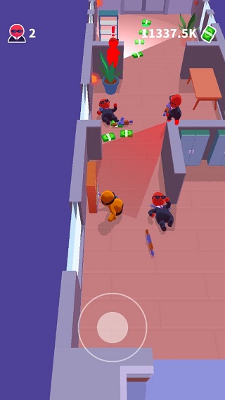 游戏的目标就是通过武器刺杀目标人物,最起始的武器是刀,玩家可以通过金币购买解锁飞镖、各式各样的枪等武器,不过购买也只是代表有机会使用,玩家必须通过局内的解锁才能真正使用,当然与武器一起出现的是防弹衣、血量恢复、武器加强等道具。玩家需要躲避NPC的视线并完成击杀、可以说是比较简单无聊的操作,但是游戏为玩家提供多张地图、不同性质NPC,将游戏新鲜感拉满。