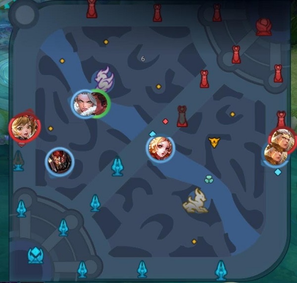 玩家必须打破敌人的水晶或基地塔才能赢得比赛。水晶位于每个团队基地的尽头,玩家出生的地方。地图上共有三条路线:对抗路、中路和射手路,也称上路、中路和下路。