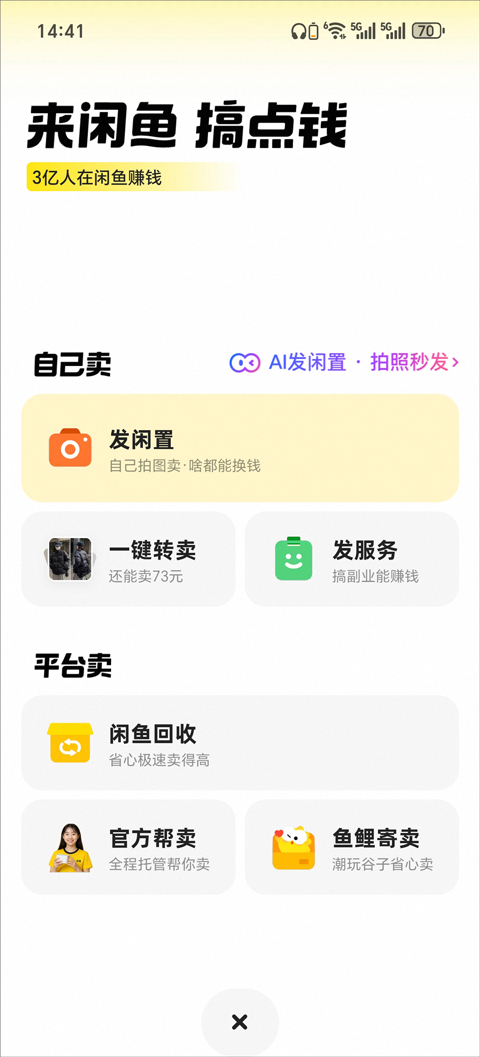 在我们的日常生活中,其实有很多用了几次就闲置下来的物品,扔了又觉得可惜,留着又占位置,那你就快来使用这款闲鱼最新版吧,这是一款由支付宝担保的个人交易平台,非常的方便安全,让你可以放心安心的使用。通过闲鱼app,你可以将自己家中一些不用的东西或者是自己用不到的物品卖出去,而且使用起来也十分简单,只要三十秒的时间拍拍物品的照片就可以挂到网上去。不仅如此,闲鱼最新版还具有社区服务功能,可在线沟通,所有商品的质量都经过严格审核,用户放心购买,各种新款商品半价销售,为用户节省了不少费用,有需要的小伙伴快来试试吧!