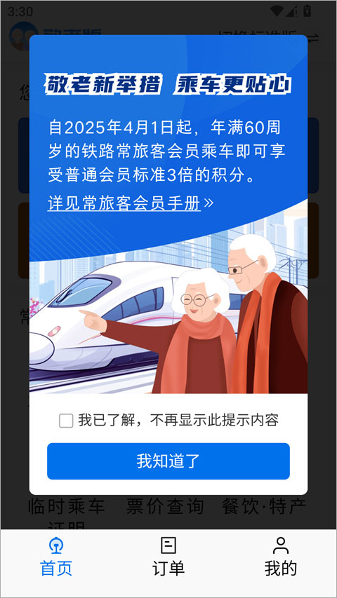 自2025年4月1日起,年满60周岁的铁路常旅客会员乘车即可享受普通会员标准3倍的积分