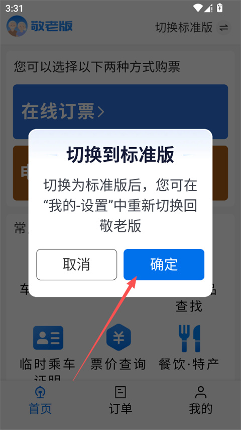 铁路12306敬老版怎么切换为标准版?