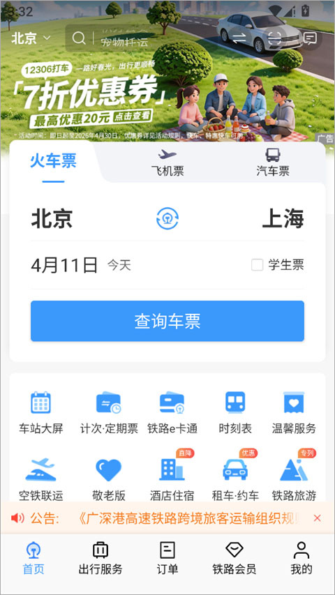【信息更准确】晚点、停运信息,列车出发、到达信息,车厢、车型信息,第一时间获知,让您出行安心。
