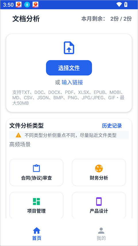 覆盖14种文档场景: 专门针对合同审查、财务分析、项目文档、市场调研、商业计划书、招投标文件、法律文书、技术方案、研究报告、政策文件、产品文档、说明书、产品介绍等多种类型进行深度分析。