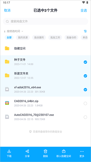 还可以对用户的账号内资源进行下载提取,或其它分享、编辑操作等