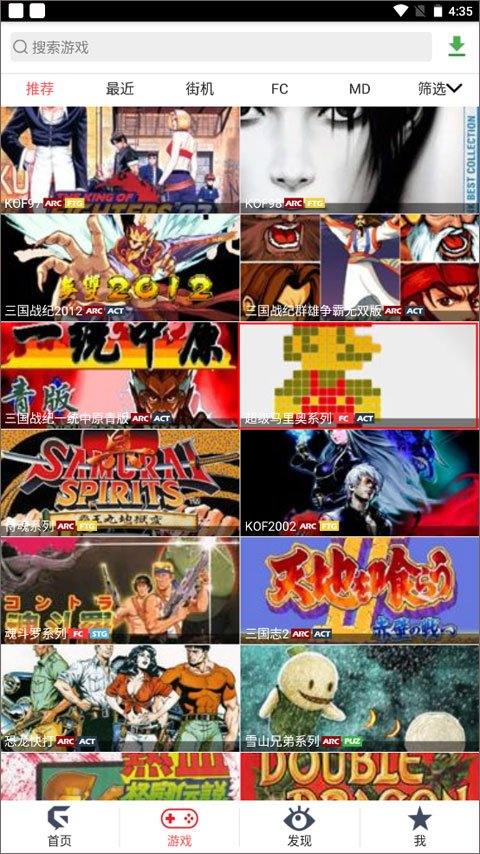 雪人兄弟、泡泡龙、炸弹人、街头篮球、打砖块等。