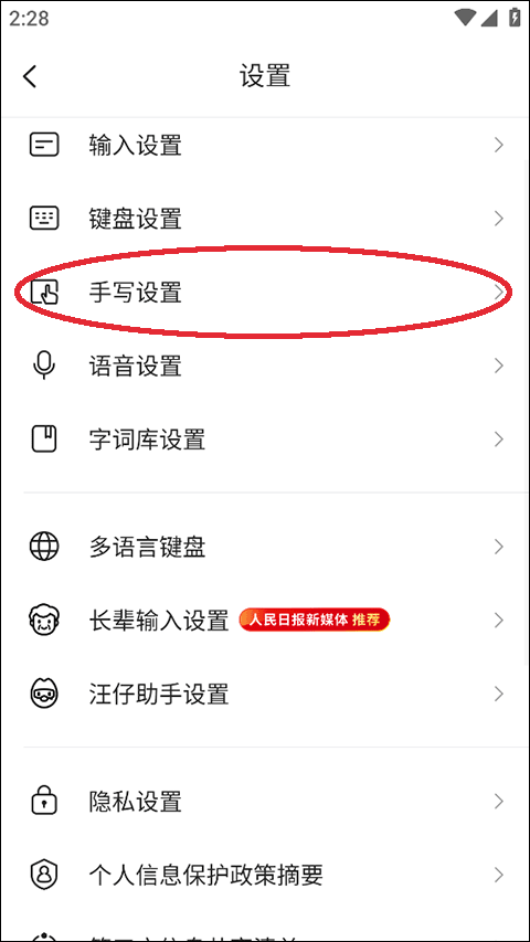 2、在设置当中,就能看到手写方面的设置了,点击进入;
