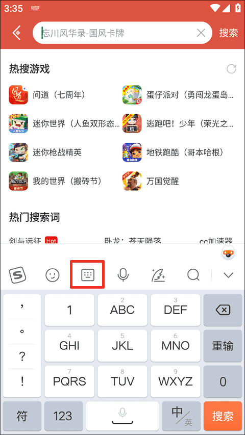虚拟9键字母输入: 在9键模式下,点击【123】按键,切换到数字输入键盘,即可输入数字。输入后点击【返回】键即可返回到前一输入状态。在拼音和英文状态下,待上屏区为空时,滑动输入键也可输入对应的数字;若待上屏区有内容,点击【123】数字键可以将拼音串转换为对应的数字,再点击候选数字就可以上屏。