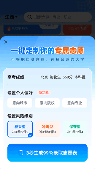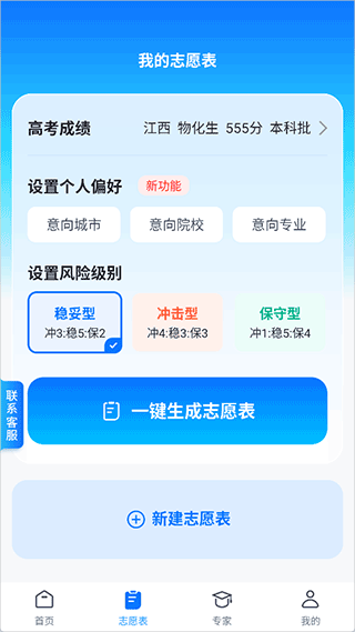 2、可以选择一键定制生成录取志愿表