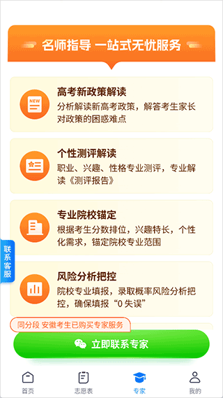 1、用户可以前往app的专家页面下进行查看,平台上有很多都是多年的专业从事高考志愿填报指导