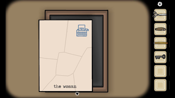 然后转几下就会发现有个照片碎片飘在半空,捡起来集齐碎片。拼成照片,背面还写着 the women画着打字机。所以去打字机打出the women。别忘了空格!!