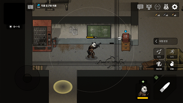 3、进入游戏后,玩家将操控角色进行冒险,左边控制移动方向,右边控制射击、拾取等操作;