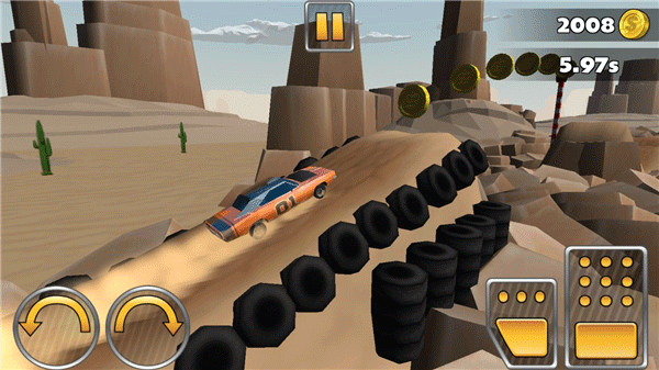2、成功进入游戏后,我们可以点击左侧两个按钮进行转向维持汽车平衡,右侧按钮分别控制油门和刹车,游戏中记得控制汽车的速度和平衡,否则汽车会爆炸结束游戏;