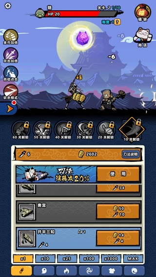 – 升级刀法提升攻击力,重生轮回新鲜玩法更爽体验。