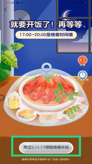 7、三餐吃饭补贴,每天三次领取对应奖励。