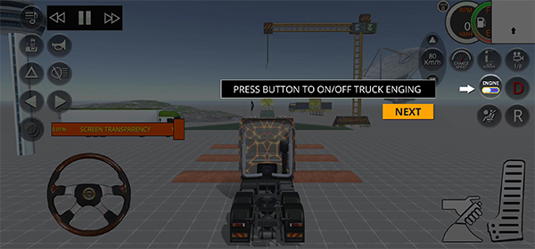 1、在本站下载安装进入游戏后,首先我们需要启动车辆,点击右上角进行启动;